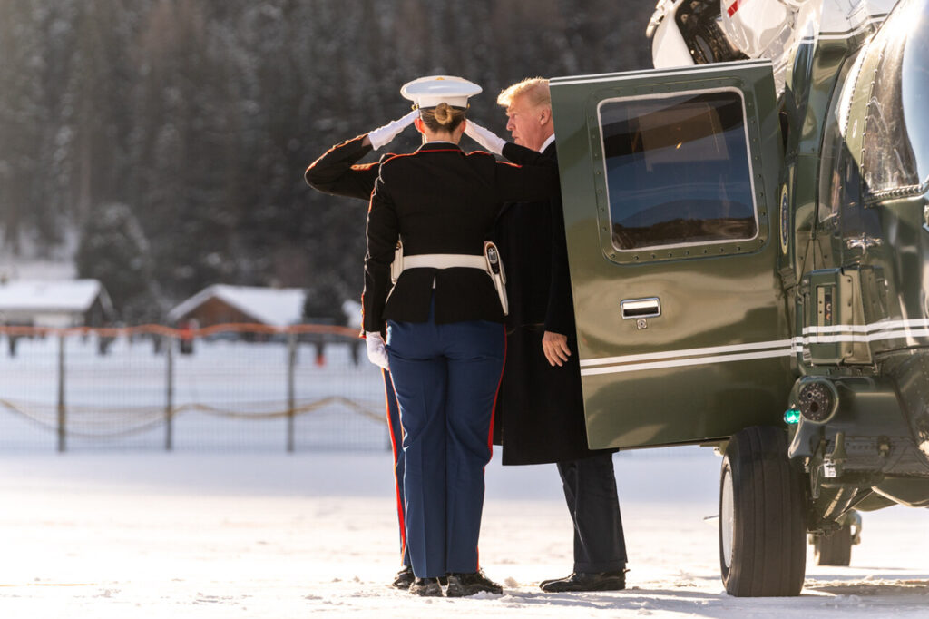 Scharfe Attacken auf europäische Politik: Masseneinwanderung mache Teile Europas „nicht mehr wiedererkennbar“, Green Deal sei ein „Green New Scam“. Er kritisierte die NATO (USA gäben viel, bekämen wenig), wiederholte aber, niemand habe mehr für die NATO getan als er. Drohung mit Zöllen gegen mehrere EU-Länder, falls kein Grönland-Deal zustande komme.