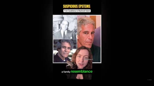 Die Autorin des Youtube-Kanals „ali mcforever“ verweist in ihrer Besprechung von Epsteins Buch auf Leslie Epsteins frappierende äußere Ähnlichkeit mit Jeffrey Epstein – im selben Alter erscheinen sie wie eineiige Zwillinge. Außerdem stellt sie die These auf, dass sein Vater und dessen Zwillingsbruder mit dem Drehbuch für „Casablanca“ im Protagonisten Rick, der aus einer scheinbar neutralen Positionen heraus ein Netzwerk zu allen Kriegsparteien bildet, das System Epstein vorweggenommen haben. Letztlich würde es sich um einen überschaubaren Kreis von Geld- und Macheliten handeln, was unter anderem auch mit den „Landsmannschaften“ zusammenhinge, die eine zentrale Rolle bei der gegenseitigen Hilfe von Einwanderern spielte, insbesondere für osteuropäische Juden im späten 19. und frühen 20. Jahrhundert – neben der Hebrew Immigrant Aid Society (HIAS, gegründet 1881/1892), die Millionen jüdischer Einwanderer auf Ellis Island mit Unterkunft, Nahrung, Rechtsberatung, Übersetzung und Familienzusammenführung unterstützte.